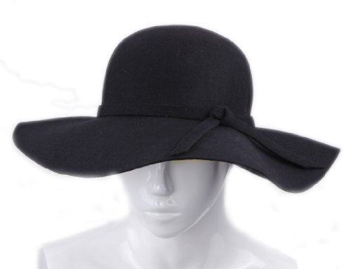 Y-BOA - Chapeau Feutre à Large Bord-Femme Moderne - Laine - Plage/Soleil -T.57CM - Automne/Hiver (Noir)