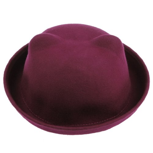 Y-BOA 1pc Chapeau Melon Rétro Style Britannique Vintage Charlie Chaplin Chat d'Oreille en Laine Vogue Collocation Unisexe/Enfant (rose & rouge)